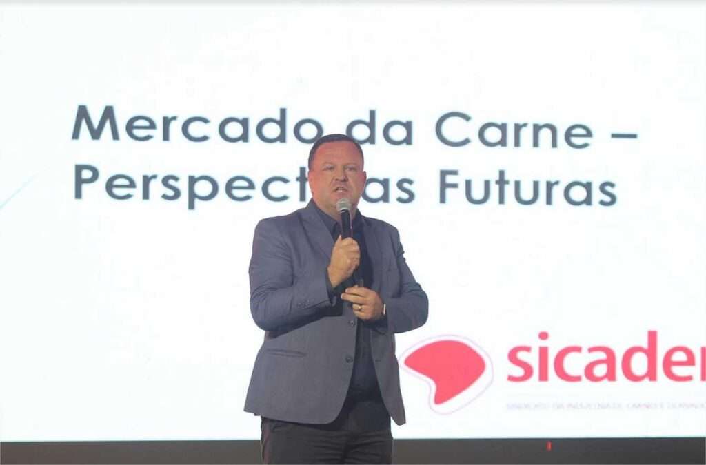 Na parte da manhã, o primeiro palestrante foi o presidente do Sindicato da Indústria de Carnes e Derivados no Estado do Rio Grande do Sul (Sicadergs), Ladislau Böes. Ele iniciou sua fala dizendo que o desafio é olhar a cadeia produtiva da carne como um todo. “Ela é representada por criadores, produtores, indústria e também pelo varejo. E uma das coisas que temos que ter entendimento é para onde vai a carne produzida no Rio Grande do Sul. Hoje, 90% fica no mercado gaúcho. Apenas, em torno de 10% é destinado à exportação”, relatou o dirigente. Böes também falou sobre o poder que está nas mãos do consumidor, seja sobre o que o produtor vai produzir no campo, ou aquela carne que será industrializada.