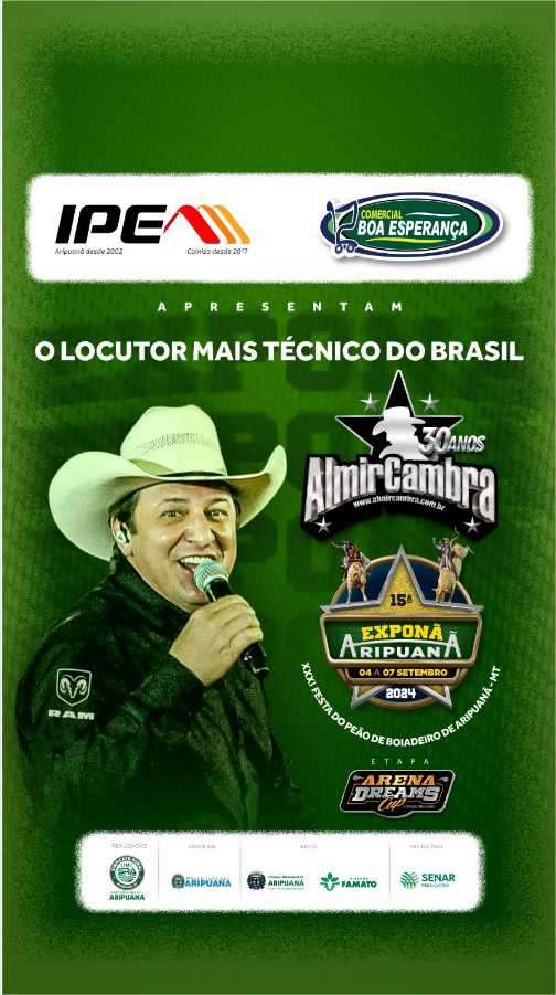 O Sindicato Rural de Aripuanã realizará no período de 04 a 07 de setembro de 2024, a 15ª Exponã e 31ª edição da Festa do Peão Boiadeiro. Esse ano a diretoria programou um mega evento de entretenimento, repleto de atrações musicais e uma gastronomia variada.
