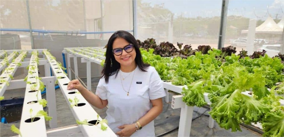 O sistema conta com seis tanques suspensos, de 5 mil litros de água cada, abrigando aproximadamente 250 tilápias por tanque. Ao lado, são cultivados cerca de dois mil pés de hortaliças, com destaque para a alface, produzida totalmente livre de defensivos agrícolas. O espaço é isolado, garantindo maior controle sanitário e eficiência produtiva.
