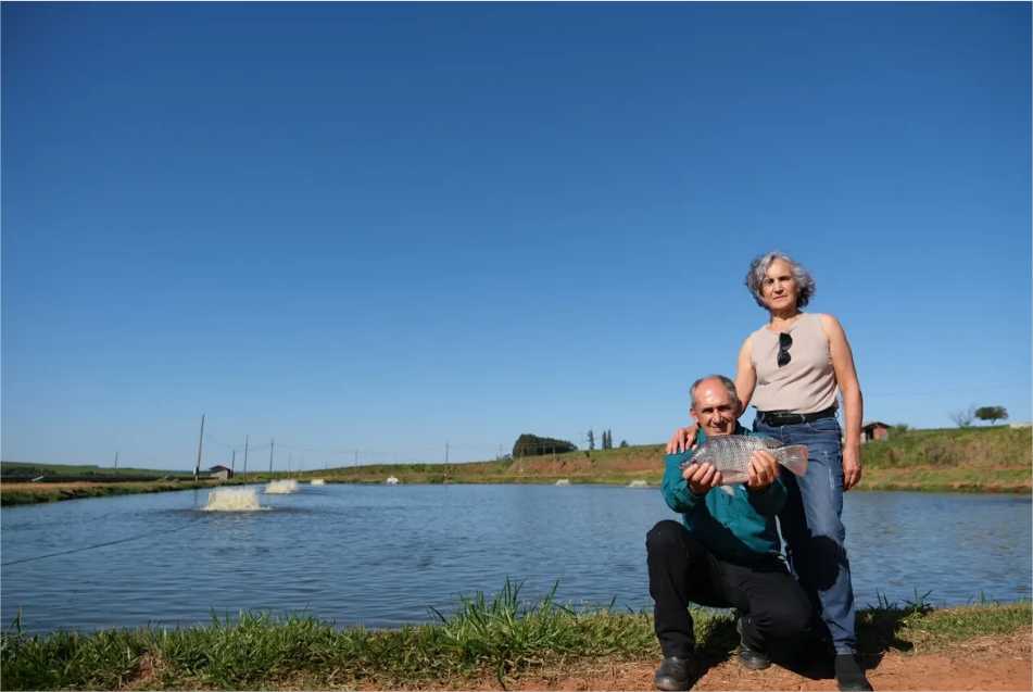 Na propriedade, que produz um milhão de peixes anualmente, distribuídos 13 hectares de lâmina d’água, o marido da arquiteta Edna Maria, inicialmente não tinha interesse na piscicultura. Começou para ajudar a levar rede trifásica para o entorno, a convite de seu cunhado Paulo de Mattos. Com “missão dada, missão cumprida”, hoje, já tem projeto para expansão de mais 90 mil metros quadrados.