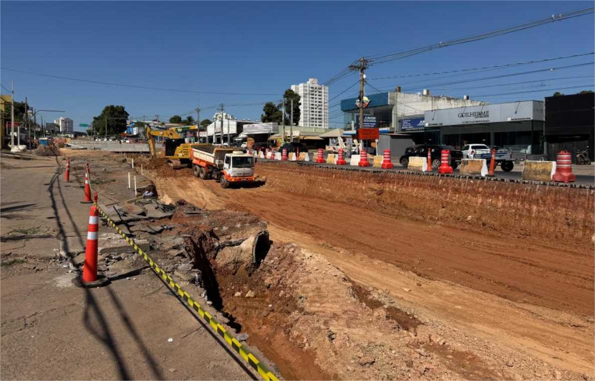 Outra frente de trabalho está localizada em frente ao Todimo Lar Center, onde será construída uma nova passagem de nível. A estrutura permitirá o retorno por baixo da Avenida Miguel Sutil, substituindo a antiga, que está sendo demolida. Durante essa etapa, o trânsito opera em meia pista.