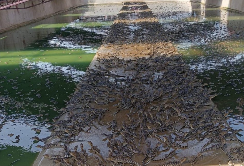 Criação em cativeiro do jacaré-do-pantanal (Caiman yacare), contribui para a preservação da espécie. – Foto por: Arquivo/Pesquisador