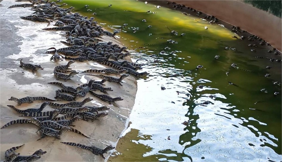 Criação em cativeiro do jacaré-do-pantanal (Caiman yacare), contribui para a preservação da espécie. – Foto por: Arquivo/Pesquisador