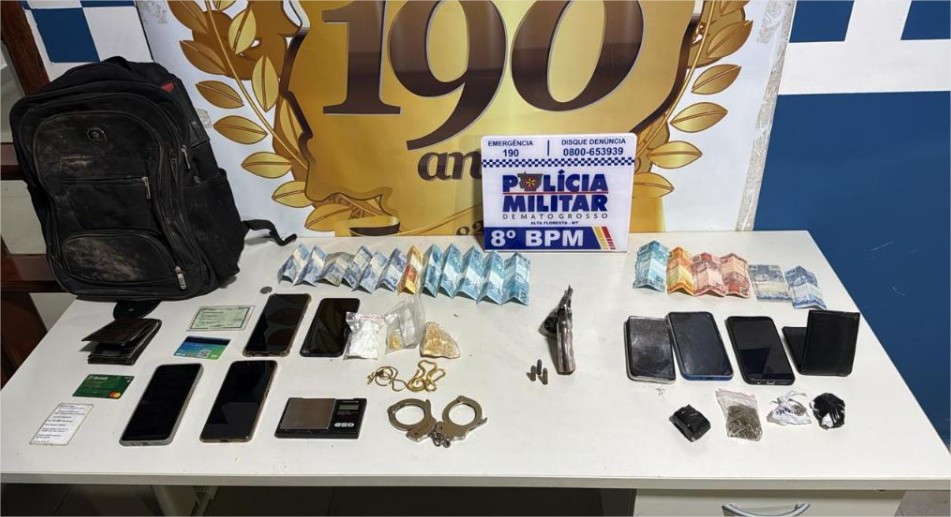 Já com os outros dois suspeitos, foram apreendidas porções de drogas e quantia em dinheiro. Eles receberam voz de prisão e foram conduzidos para a delegacia de Alta Floresta para registro da ocorrência e demais providências.