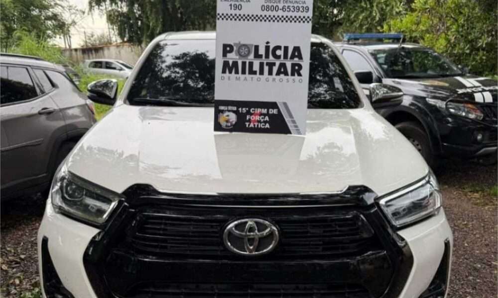 Caminhonete foi recuperada pela Força Tática, na tarde desta segunda (24) – Foto por: PMMT Equipes da Força Tática do 2º Comando Regional e do Batalhão...