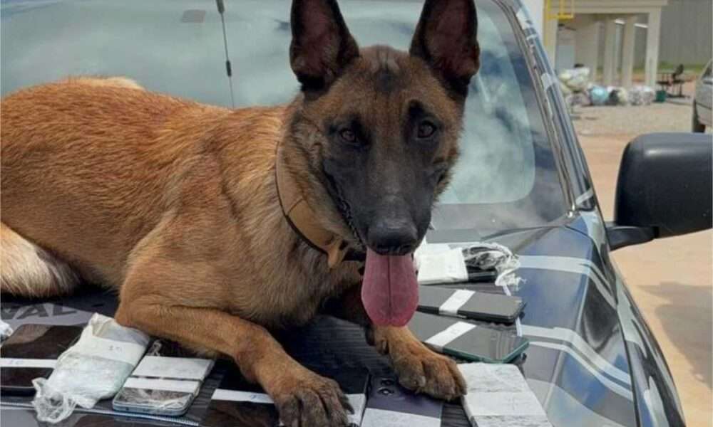 O cão Furya, do canil do SOE, participou da ação no CRVG – Crédito – Polícia Penal / Sejus A Polícia Penal realizou, na manhã...