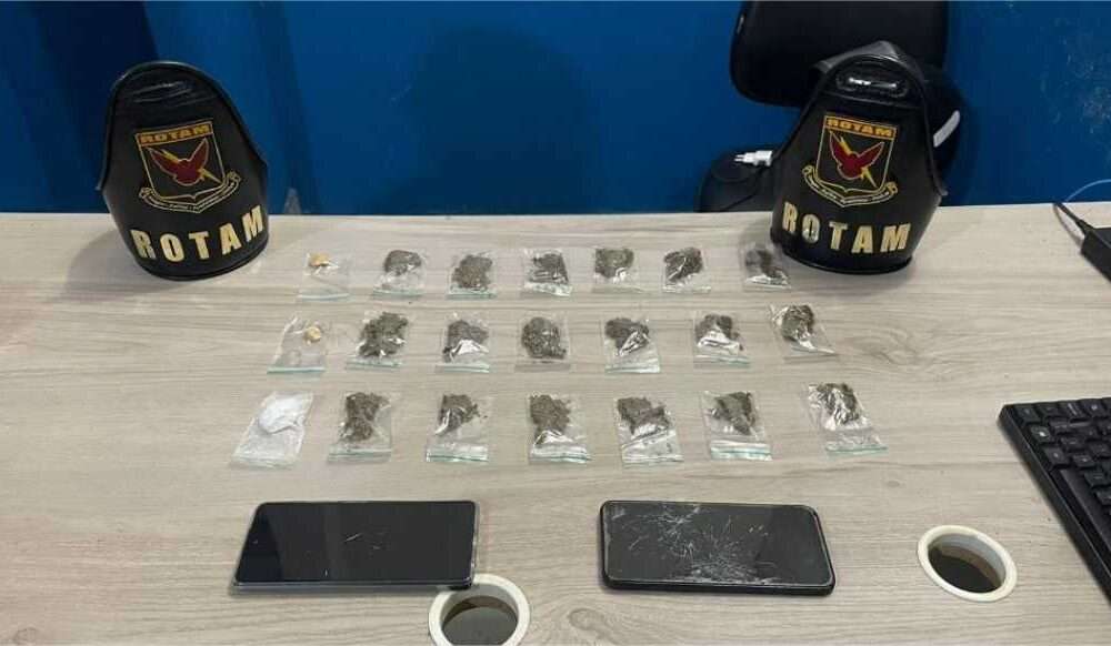 PMMT Policiais militares do Batalhão de Rondas Ostensivas Tático Móvel (Rotam) prenderam dois homens, de 19 e 25 anos, por tráfico ilícito de drogas, na...