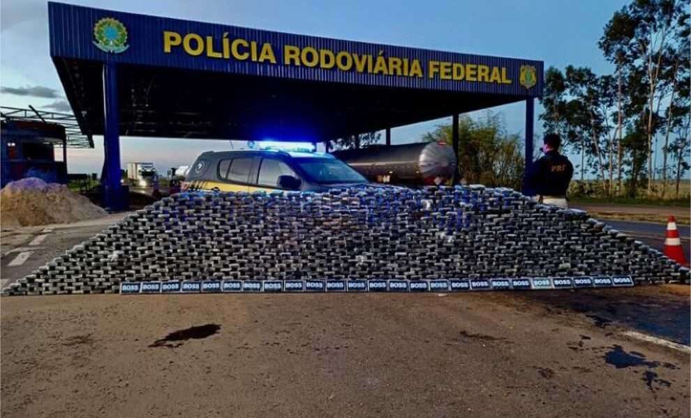 Reprodução/PF A Polícia Rodoviária Federal apreendeu 899 tabletes de cocaína, aproximadamente 961,93 quilos, escondidas em 33 tonéis em um caminhão semirreboque carregado com milho, na manhã...