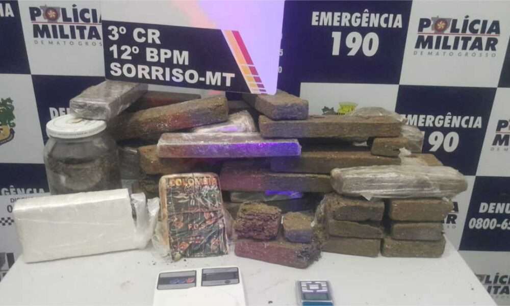 PMMT Policiais militares do 12º Batalhão apreenderam, na noite desta quarta-feira (02.10), 33 quilos de entorpecentes entre maconha e cocaína, em uma residência no...