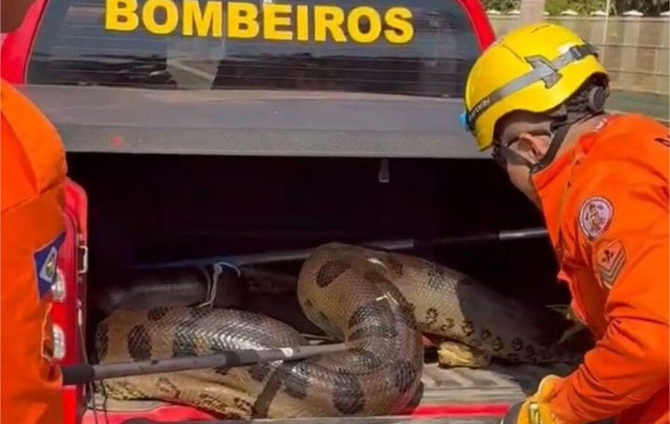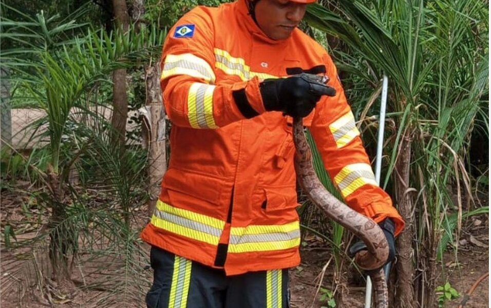 Sucuri de cinco metros resgatada pelo CBMMT em empresa de produção de algodão. – Foto por: CBM-MT O Corpo de Bombeiros Militar de Mato Grosso...