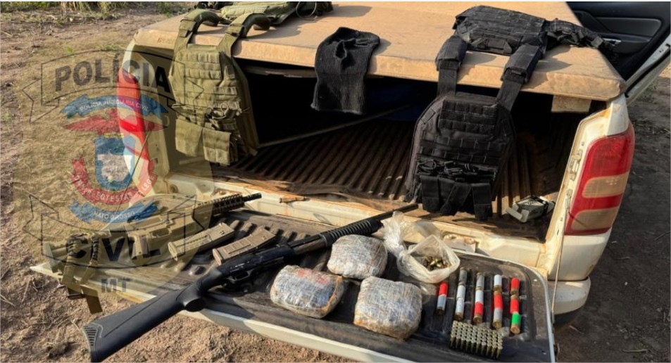 PC-MT Um arsenal de armamento pesado, munições e drogas foram localizados na zona rural do município de Cáceres, pela Polícia Civil e Polícia Militar, na...
