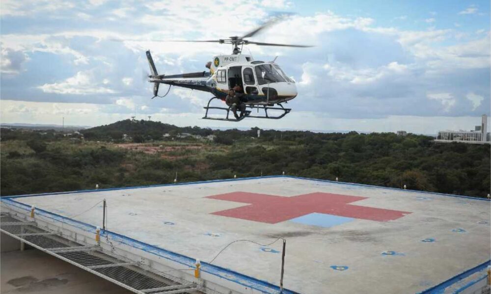 Este foi o segundo teste do Ciopaer no heliponto do Hospital Central e contou com o apoio do Corpo de Bombeiros – Crédito – Michel Alvim...