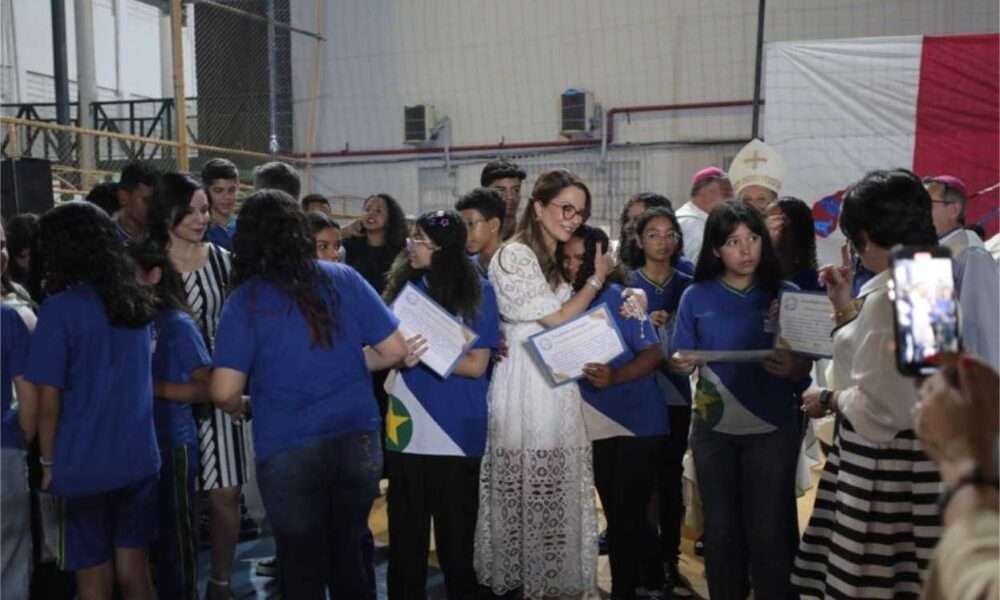 Crédito – Assessoria Na missão em Ação de Graças pelas conquistas do Pacto Educativo, a primeira-dama de MT, Virginia Mendes, representou o governador Mauro Mendes e...
