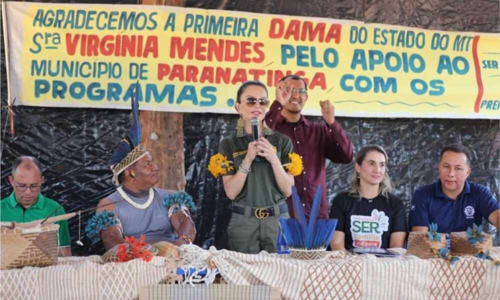 Crédito – Jana Pessôa A primeira-dama do Estado de Mato Grosso, Virginia Mendes, prestigiou a celebração do aniversário de 82 anos da aldeia Central Pakuera, da...