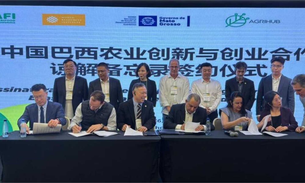 Durante o evento, foi assinado um memorando de entendimento para promoção conjunta de inovação – Foto por: Assessoria/Sedec O Fórum de Empresários da Agricultura Sustentável China-Brasil,...