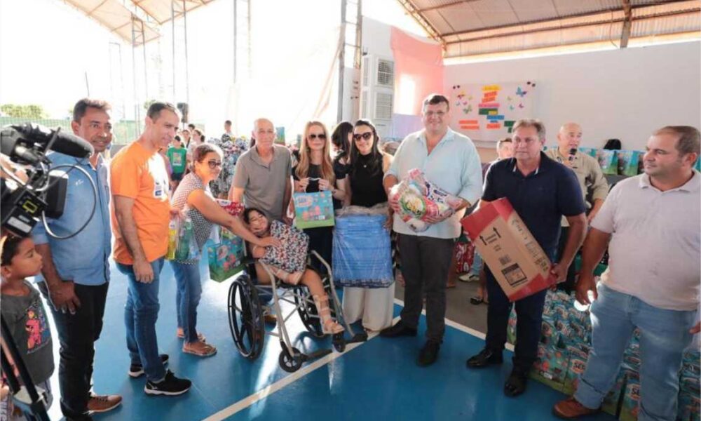 Crédito – Jana Pessôa A primeira-dama de Mato Grosso, Virginia Mendes, promoveu a entrega de cestas de alimentos, cobertores, filtros de água e brinquedos nos...