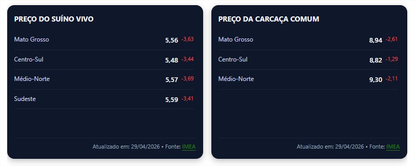 Em Goiás, o movimento de pressão também foi observado, influenciado pelo aumento da oferta, escalas mais confortáveis, redução da capacidade de suporte das pastagens e maior disposição de venda por parte dos pecuaristas diante da expectativa de novas quedas. Na região de Goiânia, a cotação do boi gordo caiu R$ 2,00 por arroba e a da vaca recuou R$ 3,00 por arroba, enquanto a novilha não apresentou variação. As escalas de abate estavam, em média, para 12 dias.