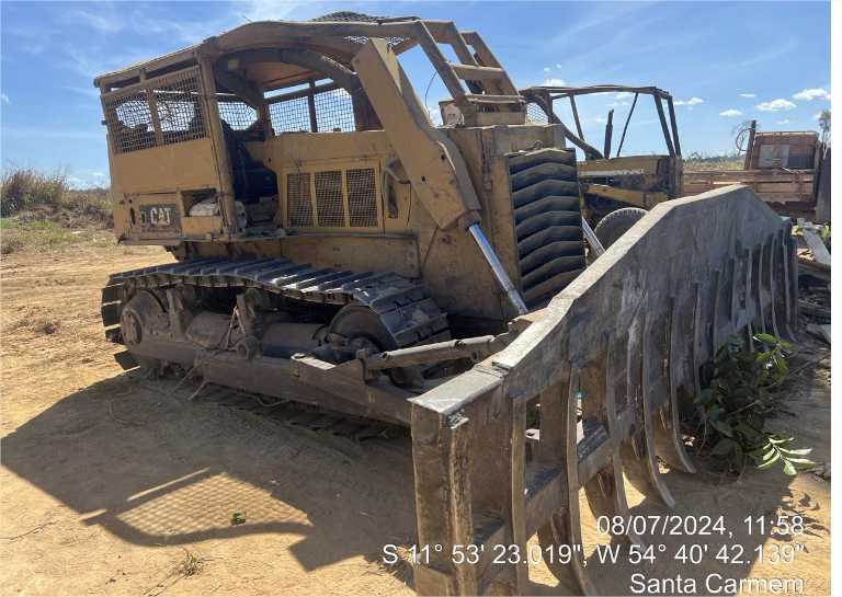 Na ação, foram apreendidas uma caminhonete, dois tratores, um tanque de combustível contendo 600 litros de óleo diesel e 12 toras em madeiras medindo aproximadamente 13 metros cúbicos, em uma propriedade rural às margens da MT-422.