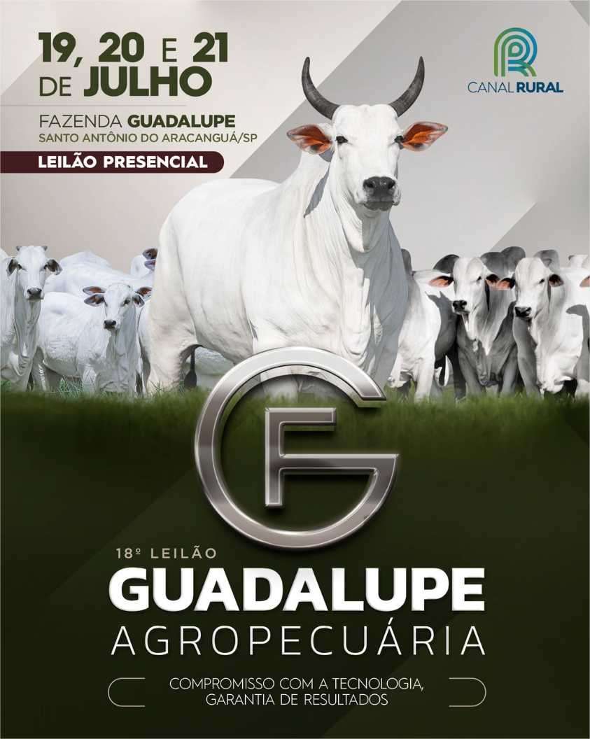 Chancelado pela Associação dos Criadores de Nelore do Brasil (ACNB), o 18º Leilão Guadalupe Agropecuária será transmitido pelo Canal Rural. As assessorias encarregadas serão a Bula, Premier e Ipê Ouro. A leiloeira é a Programa Leilões.