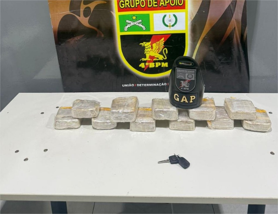 Na abordagem, foram encontradas duas porções de maconha e três porções de cocaína e uma quantia em dinheiro. Questionado sobre as drogas, o suspeito confirmou a venda e que possuía mais quantidades escondidas em um terreno baldio ao lado da residência.