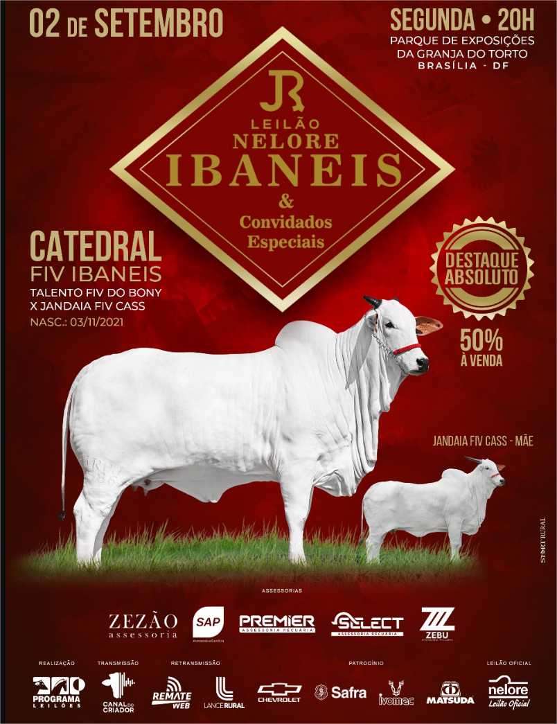 No dia 2 de setembro, às 20 horas (horário de Brasília), será realizado o Leilão Nelore Ibaneis & Convidados, no Parque de Exposições da Granja do Torto, em Brasília (DF). Serão ofertados cerca de 30 lotes de embriões, bezerras, doadoras, aspirações e animais de pista. A Catedral FIV Ibaneis será o grande destaque do leilão: ela é neta da grande matriarca Parla FIV AJJ.