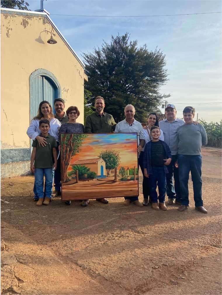 A obra, produzida em menos de uma semana, foi denominada “Pôr do sol nas terras da família”. O quadro, é um acrílico sobre tela que retrata o sentimento da família Rosseto pela singela capela construída na propriedade, fator decisório para aquisição daquelas terras há 25 anos e que eterniza muitas histórias.
