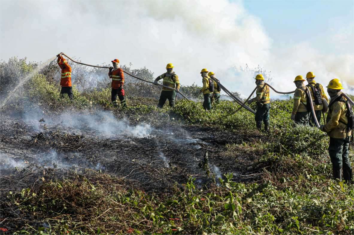 Já no Pantanal mato-grossense, os bombeiros se distribuem na Terra Indígena Baía dos Guató e Reserva Particular do Patrimônio Natural (RPPN) Sesc Pantanal, em Barão de Melgaço; e na região da Fazenda Cambarazinho, em Poconé. Nesses locais, os militares contam com um avião, 17 viaturas, 11 máquinas e quatro barcos.