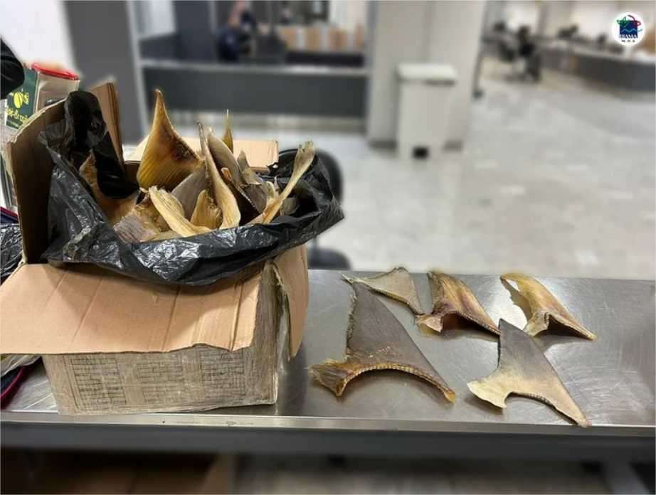 As barbatanas apreendidas pertenciam a espécies ameaçadas de extinção, como o tubarão-azul e o tubarão-galha-branca-oceânico.