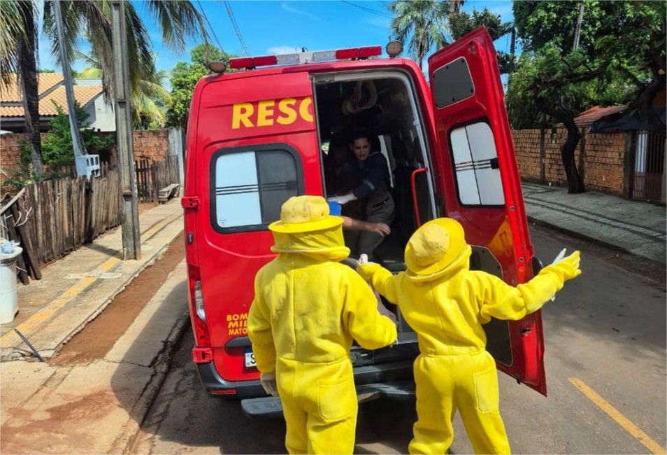 O Corpo de Bombeiros Militar de Mato Grosso (CBMMT) socorreu, nesta terça-feira (04.11), um homem que foi atacado por um enxame de abelhas no bairro Novo Jardim, em Sinop (a 479 km de Cuiabá).