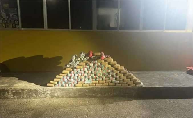 Os policiais inspecionaram a carga e encontraram vários invólucros contendo substâncias análogas à pasta base de cocaína e à maconha. Durante a pesagem do material, foram contabilizados aproximadamente 75 kg de pasta base de cocaína e 42 kg de maconha.