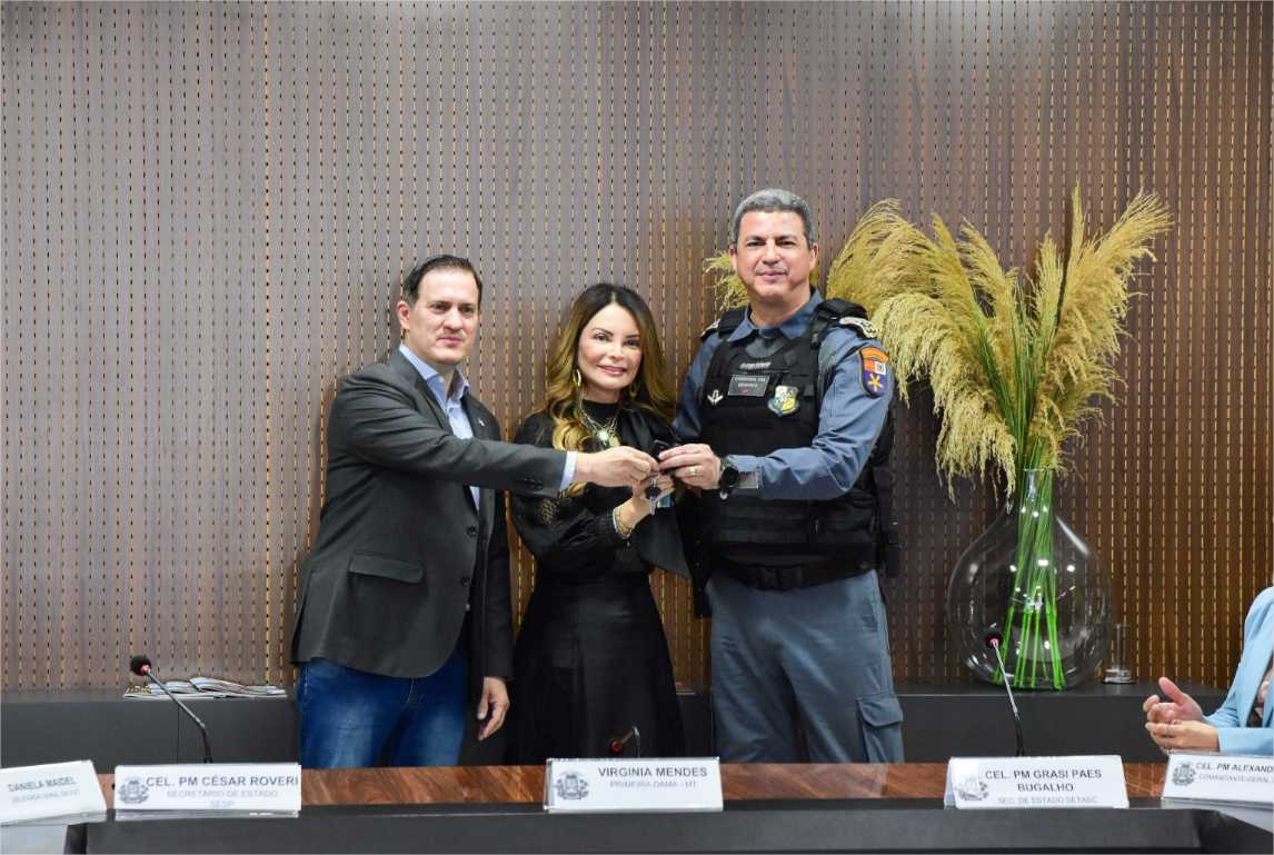A Secretaria de Segurança Pública de Mato Grosso (Sesp) e a primeira-dama do Estado, Virginia Mendes, entregaram nesta segunda-feira (14.10) quatro novas viaturas que irão fortalecer as ações de proteção às mulheres em Cuiabá e Várzea Grande, por meio do programa SER Família Mulher.