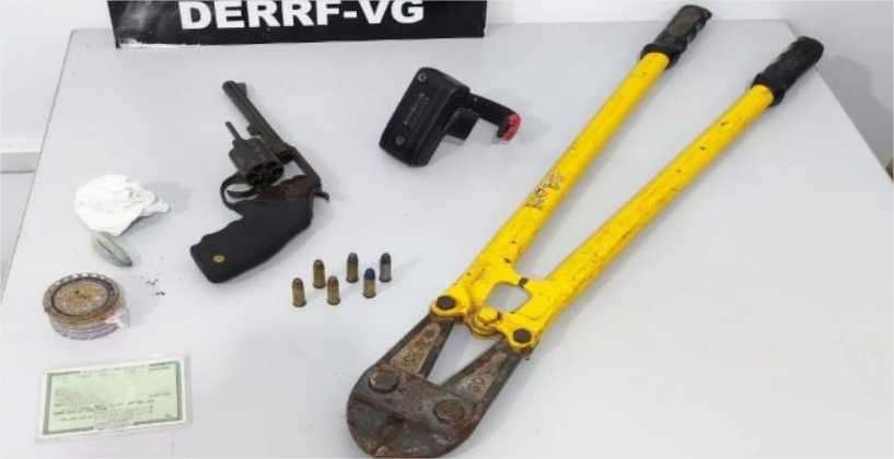 Os policiais continuaram seguindo o suspeito e conseguiram detê-lo dentro do imóvel, onde o segundo homem também foi encontrado. Foram apreendidas 18 porções de maconha e cinco de cocaína. Já na verificação ao objeto jogado por cima do muro, os militares recolheram o revólver de calibre 38.