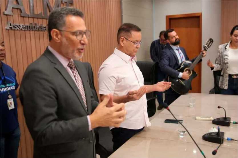 Nesta quinta-feira (12), o “Culto de Adoração, Oração, Louvor e Palavra de Deus” marcou o encerramento das atividades do GE em 2024, no Salão Negro Deputado Francisco Pinto de Oliveira. Na ocasião, foi comemorada a sanção da Lei 12.740/2024 – Dia da Bíblia.