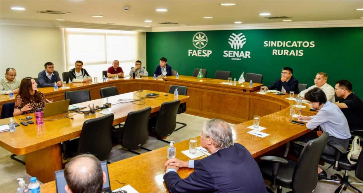 A Federação da Agricultura e Pecuária do Estado de São Paulo (Faesp) recebeu, 18 uma comitiva de nove pesquisadores e docentes do Centro Nacional de Serviços de Tecnologia Agrícola da CAU-China Agricultural University, de Pequim. O encontro, que foi intermediado pelo assessor especial da presidência da entidade, Carlos Eduardo Cerri, teve como destaque a apresentação sobre agricultura irrigada no Brasil, conduzida com tradução simultânea por um intérprete presente na reunião.