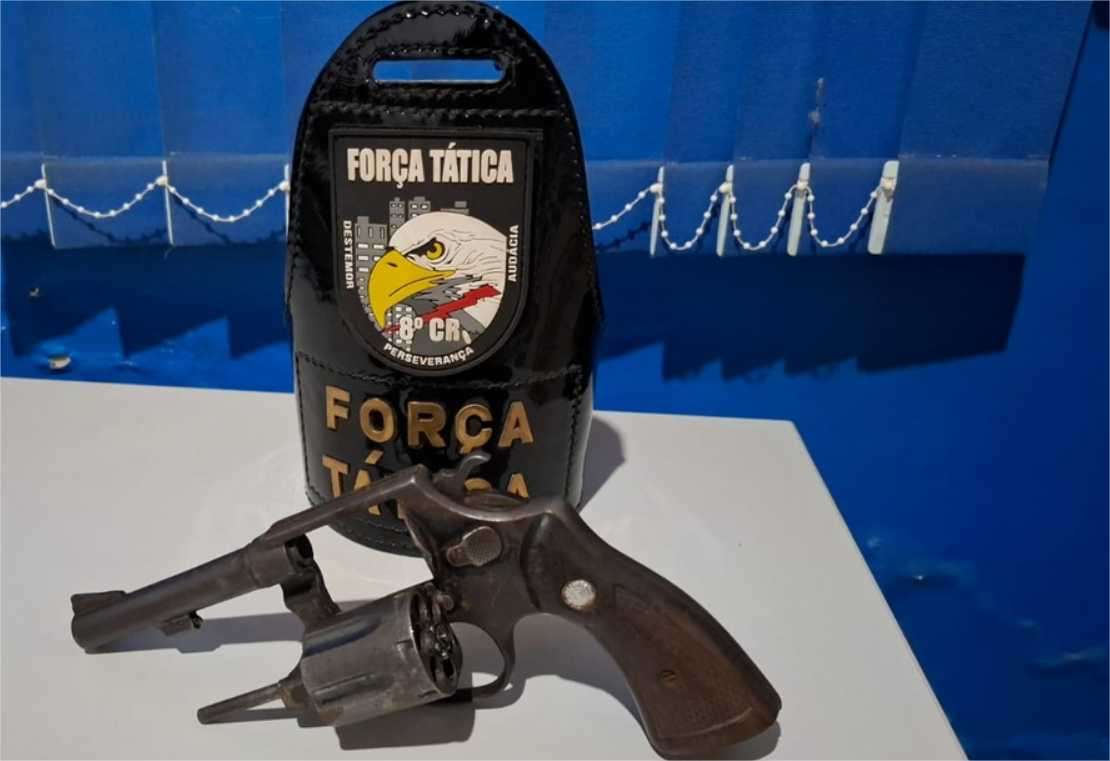 Ao abordar o veículo e realizar buscas pessoais e veiculares, os policiais localizaram um revólver calibre .38 da marca Taurus, desmuniciado, escondido sob o banco do automóvel. Questionado, o proprietário do veículo, identificado como A.R.S., de 43 anos, assumiu ser o dono da arma.