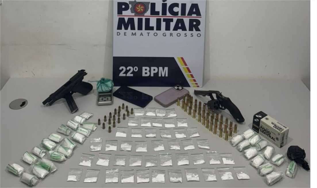 Policiais militares do 15º Comando Regional prenderam quatro membros de uma facção criminosa, na tarde desta quarta-feira (05.02), em Peixoto de Azevedo. Com os suspeitos, foram apreendidas uma porção de maconha e 362 porções de cocaína, além de duas armas de fogo e 54 munições de calibres .32 e .38.