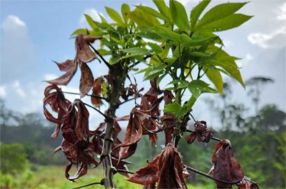 Plantas atacadas pelo fungo ficam com ramos secos e deformados, nanismo e proliferação de brotos fracos e finos nos caules, conforme pesquisas da Embrapa Amapá.