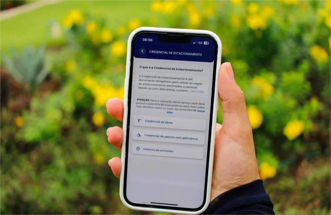 No aplicativo, acesse a opção “Condutor”. Depois, selecione a opção “Credencial de Estacionamento”. Vá na opção desejada “Credencial de Idoso” ou “Credencial de Pessoa com Deficiência”. Clique em “Emitir Credencial”, aceite os termos e pronto.