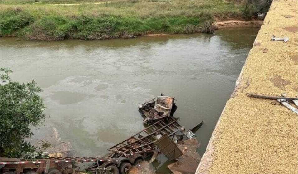 Caminhão despenca de ponte e motorista desaparece no Rio São Lourenço, em Dom Aquino