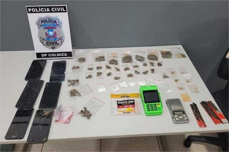 Na casa, localizada no bairro Bela Vista, em Colniza, foi preso um jovem de 18 anos, sobrinho da mulher, e uma menor de 16 anos foi apreendida, em flagrante. O jovem deve responder pelo crime de tráfico de drogas e a menor, por ato infracional análogo à associação ao tráfico. A mulher não estava na casa.
