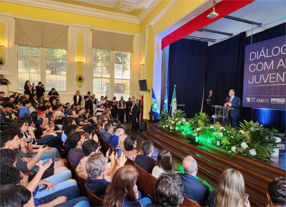 Luis Roberto Barroso participou do lançamento do projeto “Diálogos com as Juventudes”, na Escola Estadual Liceu Cuiabano Maria de Arruda Muller, em Cuiabá. O objetivo da ação, segundo o presidente do STF, é aproximar o Judiciário dos jovens brasileiros.