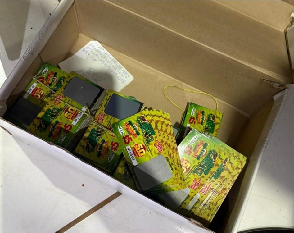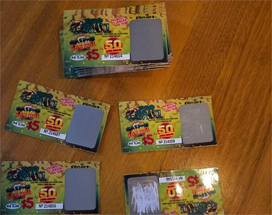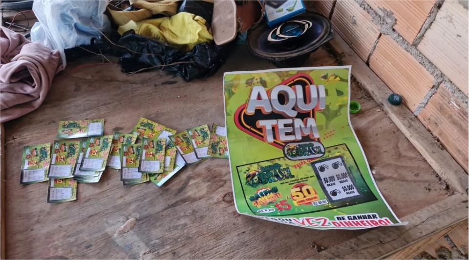 Também foi autorizada a apreensão e o descarte do material de raspadinhas, que somava centenas de bilhetes e banners de propaganda apreendidos durante as diligências.