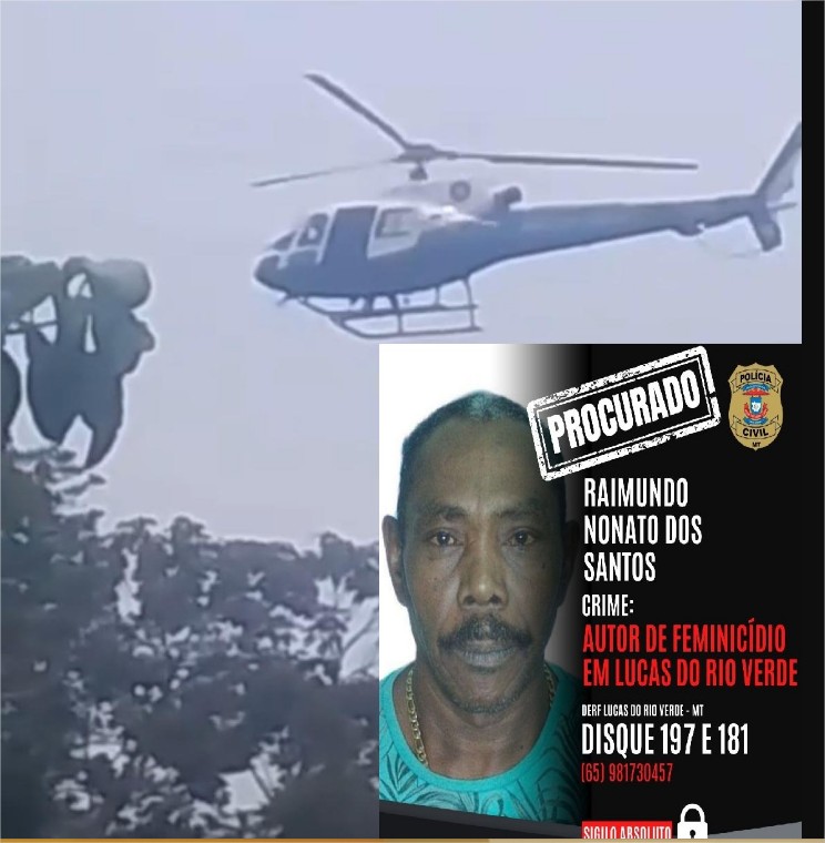 As forças de segurança de Lucas do Rio Verde seguem empenhadas nas buscas por Raimundo Nonato dos Santos, apontado como o autor do feminicídio de Antonieta Barroso dos Santos, de 51 anos. A operação, que entrou nesta quinta-feira (30) em seu segundo dia, conta com o apoio do Centro Integrado de Operações Aéreas (Ciopaer) de Sorriso, que utiliza um helicóptero para auxiliar nas buscas. As diligências se estendem por uma área de mata que chega a 65 quilômetros de distância do perímetro urbano. VÍDEO NO FINAL DA MATÉRIA
