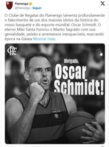 Oscar Schmidt encerrou a carreira no Flamengo, onde é ídolo. Ele também passou por Palmeiras, Sírio, América do Rio, Corinthians, Bandeirantes e Mackenzie, entre outras equipes. Considerado o maior jogador brasileiro de basquete de todos os tempos, ele também fez história na Seleção, conquistando títulos, feitos e vitórias marcantes. Sua decisão em não atuar na NBA, já que, à época, os jogadores estrangeiros não poderiam defender sua seleção, marcou a carreira e o patriotismo do ex-atleta.