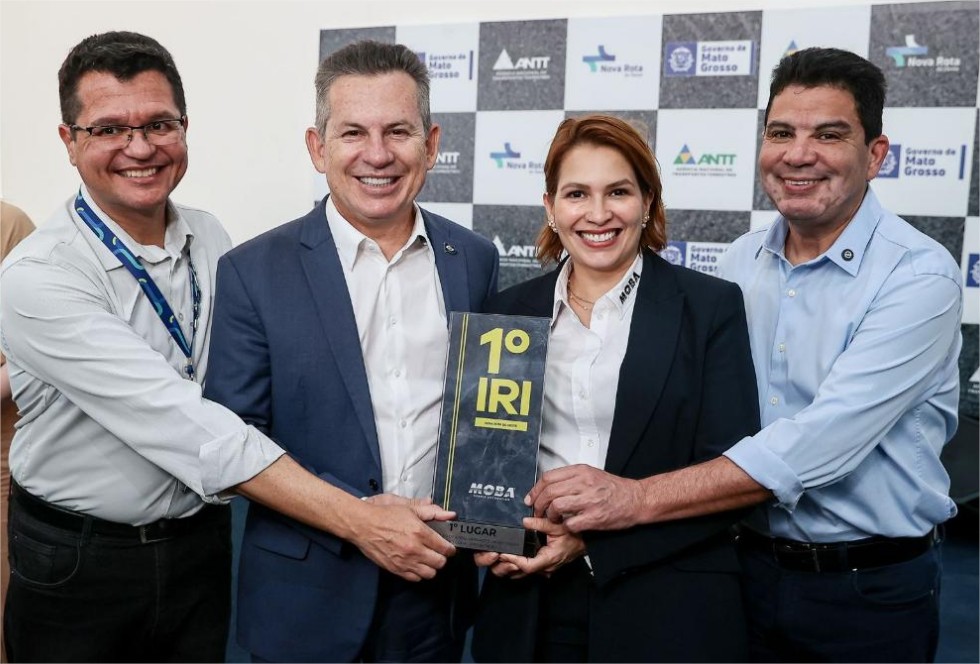 A duplicação da BR-163 no trecho entre os municípios de Sorriso e Sinop, em Mato Grosso, bateu recorde nacional de qualidade ao atingir o melhor índice de conforto já registrado no Brasil, e recebeu o prêmio de Melhor IRI de Implantação de Obras. O troféu foi entregue nesta quinta-feira (16.10) ao governador Mauro Mendes, ao presidente do Conselho de Administração da Nova Rota do Oeste, Cidinho Santos, e ao diretor-presidente da Concessionária, Luciano Uchôa.