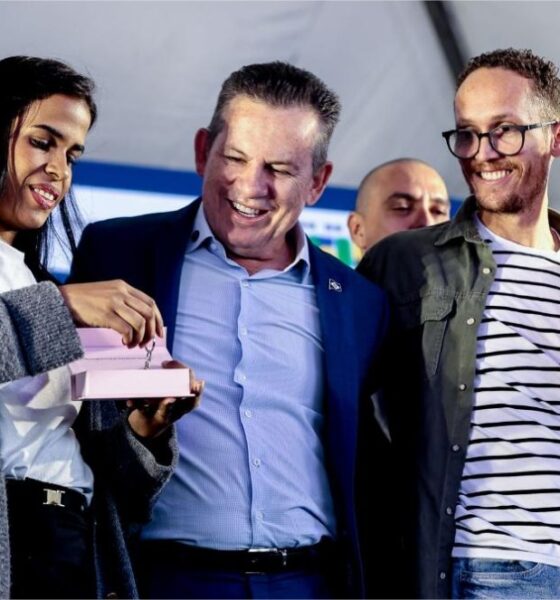 O governador Mauro Mendes, ao lado de casal que recebeu a casa – Crédito – Mayke Toscano/Secom O governador Mauro...