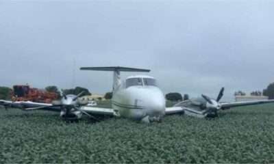 Foto: Reprodução Um avião bimotor de pequeno porte, modelo King Air 350, caiu em uma plantação de soja no município de Ribeirão Cascalheira, na tarde...