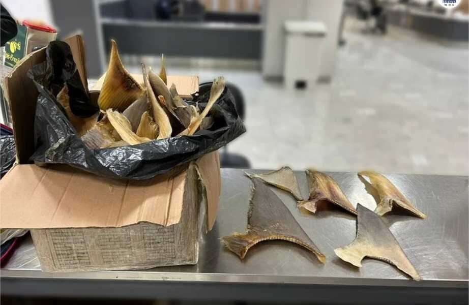 Foto: Divulgação/Ibama Operação conjunta da Receita Federal e do Ibama apreendeu, nesta segunda-feira (23), uma carga de 96 quilos de barbatanas de tubarão no...