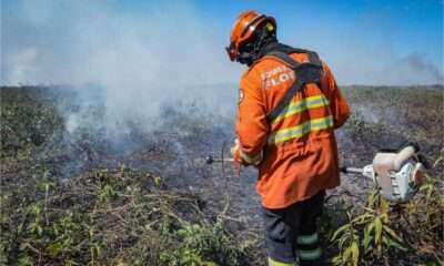 Michel Alvim/Secom-MT O Corpo de Bombeiros Militar de Mato Grosso continua as ações de combate ao incêndio na região Porto Conceição, em Cáceres, nesta quinta-feira (18.07)....