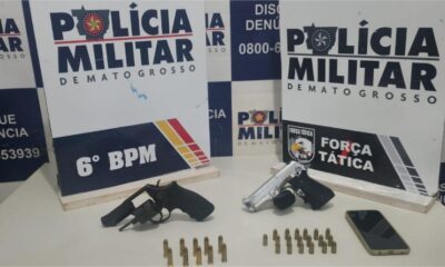 PMMT Policiais militares prenderam um homem e uma mulher, ambos de 19 anos, e apreenderam um adolescente de 17, suspeitos de porte ilegal de arma...